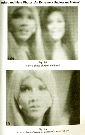 Here is the truth about these photos. The person identified on the left as Asket is actually the singer and dancer Michelle DellaFave. Michelle was a longtime member of the “Golddiggers” and the “Dingaling Sisters” who appeared on the Dean Martin Variety Show from 1969-1973. To learn more about Michelle DellaFave and the other Golddiggers go to The Golddiggers Super Site