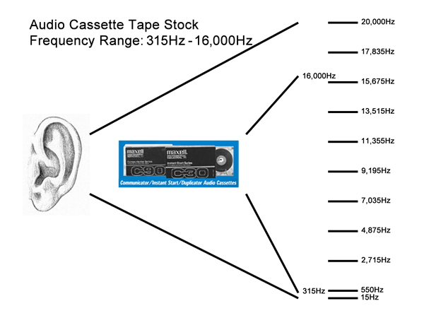 Well, Maxell’s professional line of audio cassette tape can only record frequencies from 315 Hz to 16,000 Hz. This is well within the range of human hearing.