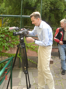 And then the Japanese television crew videotaped the films as they were being projected onto the screen in Meier’s house. This is not the Japanese television crew.